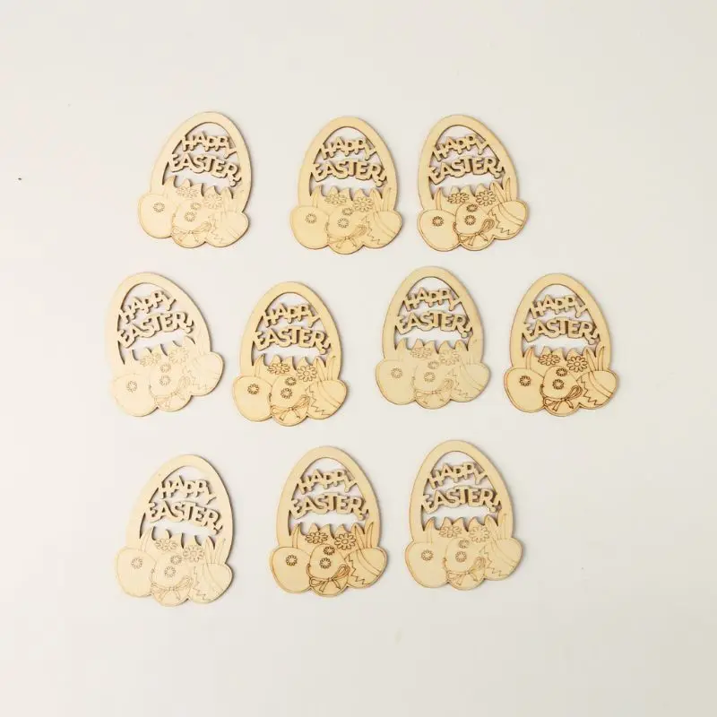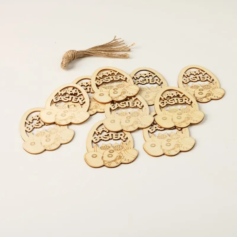 Addition Information of 10pcs Laser Cut Happy Easter Egg Wooden Tag Embellishment Decorative Pendants DIY Hanging Ornaments With Strings