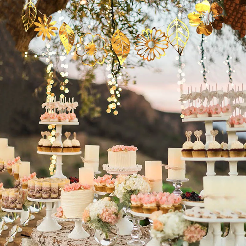 Best Offer Gold Glitter Paper Flower Leaves Garland Party Banner Wall Sticker Wedding Decorations Mariage Garland Flower Hanging Bunting with FREE Shipping Worldwide!